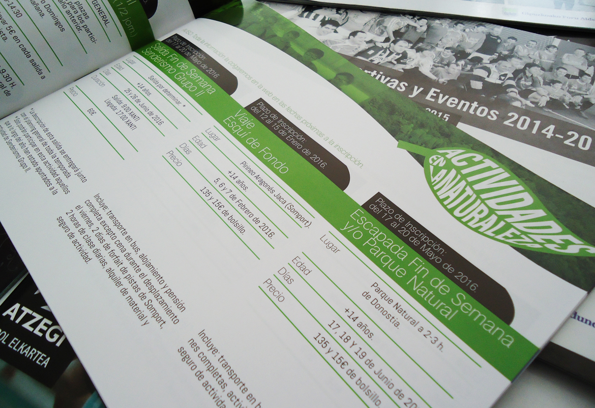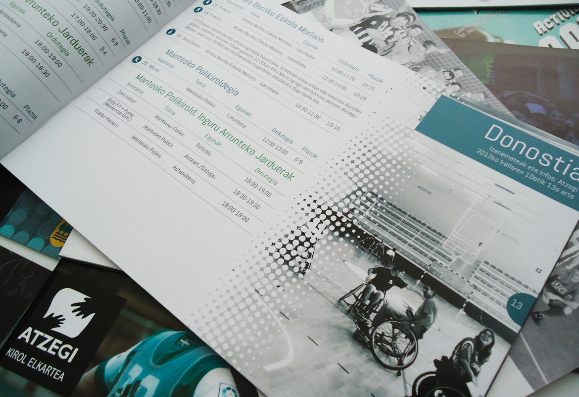 Folleto en formato revista de 44 páginas en el cual se detallan todos los cursos que se ofertan desde el servicio de ocio y participación social de Atzegi. Destinado a usuarios de la asociación.