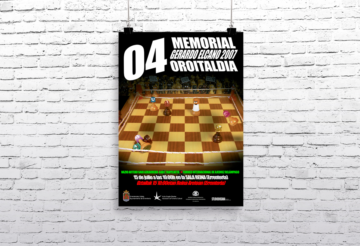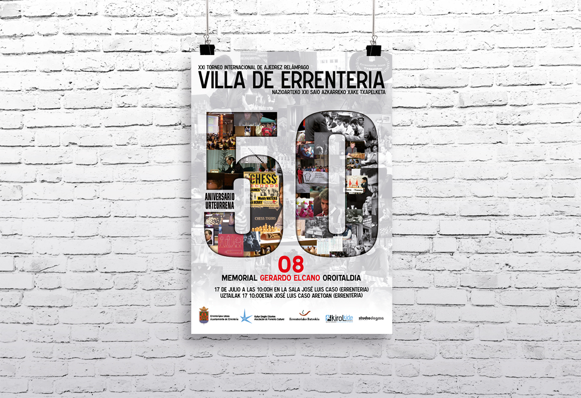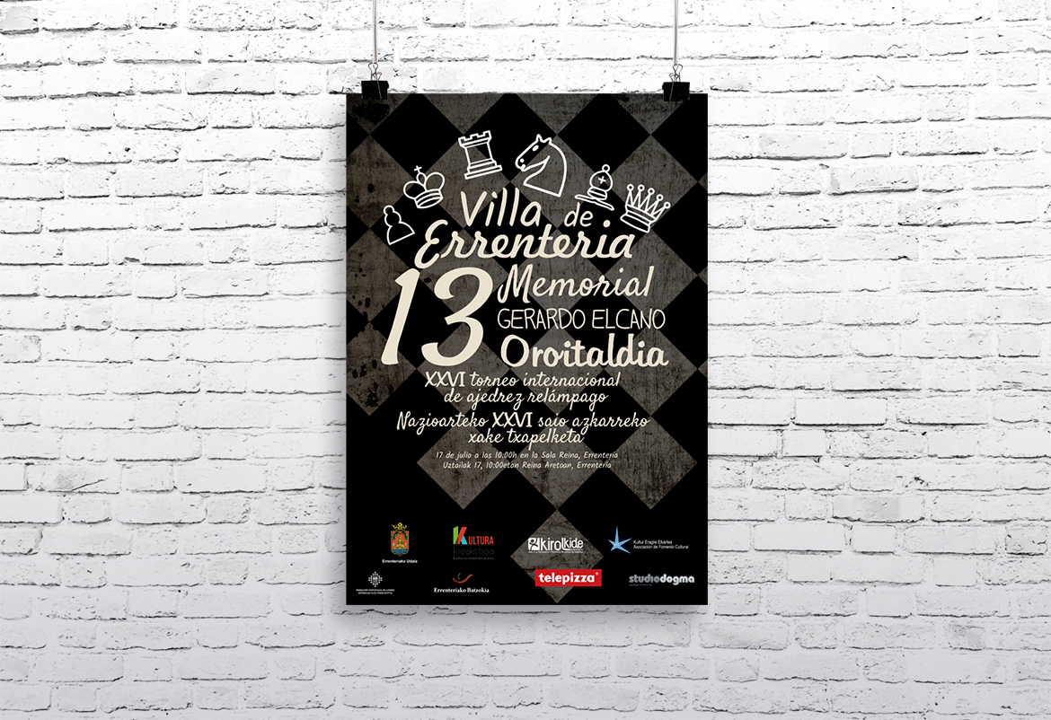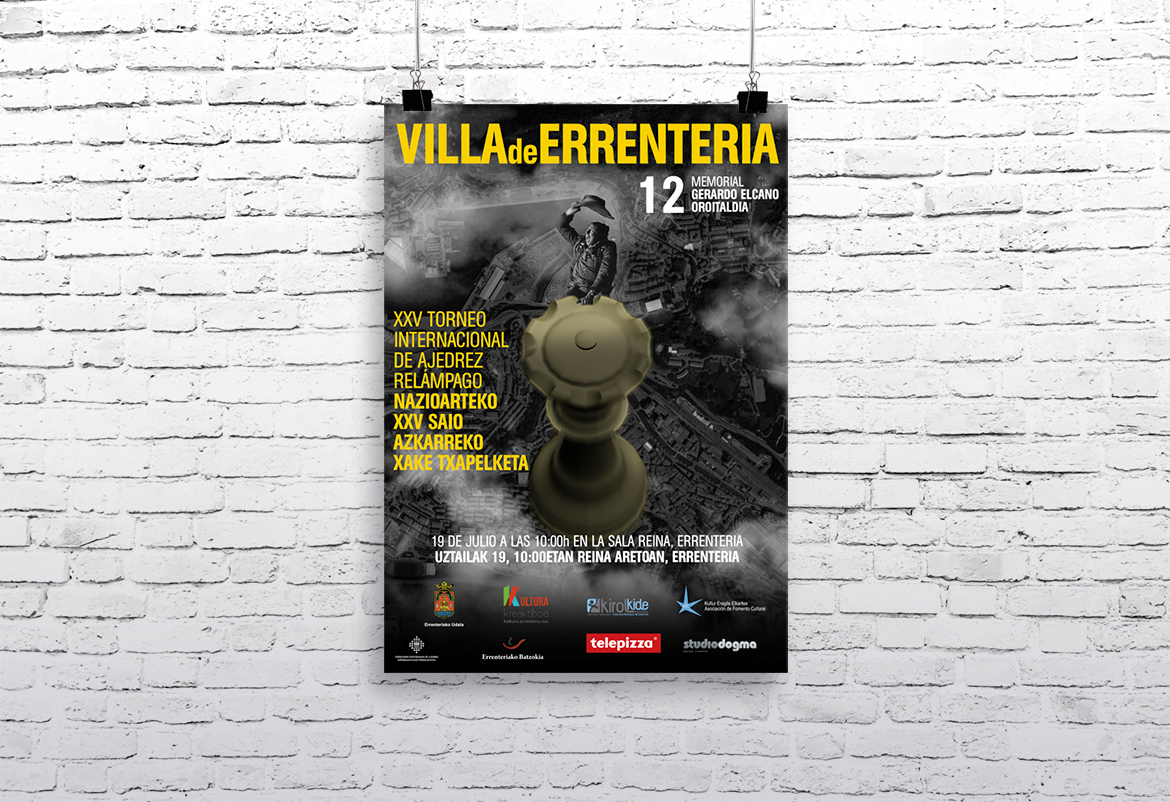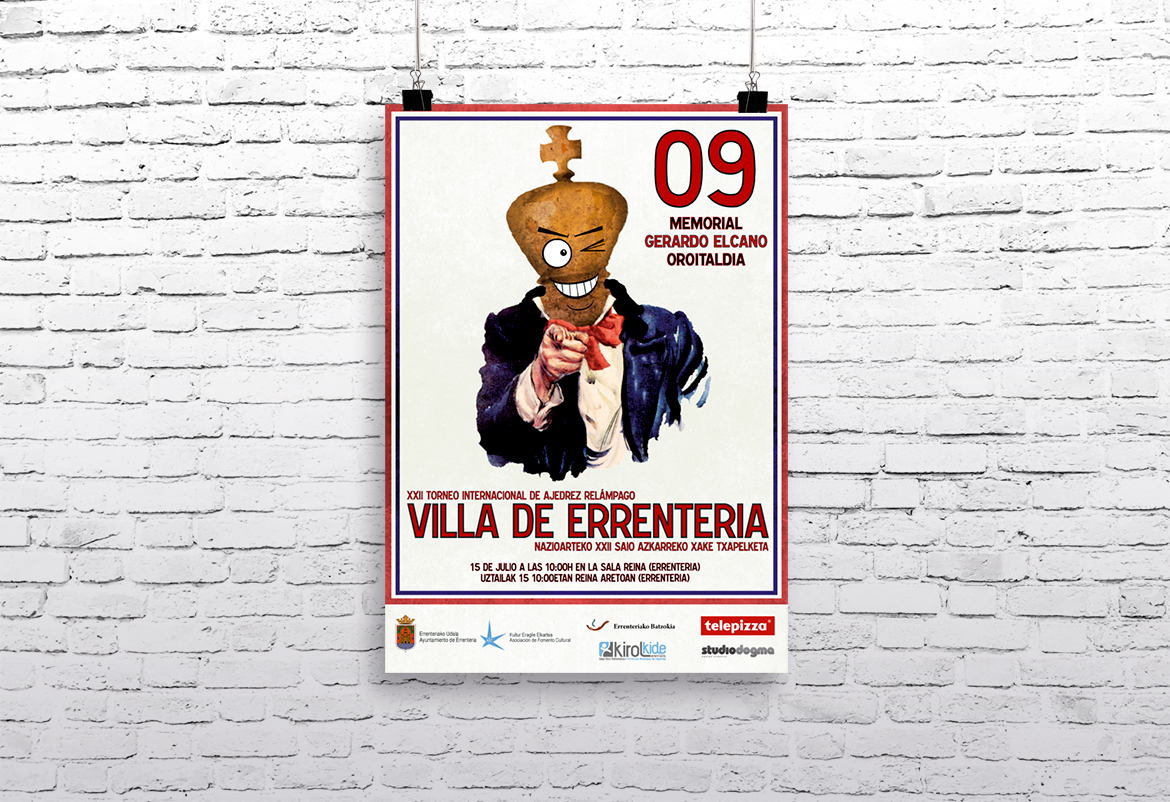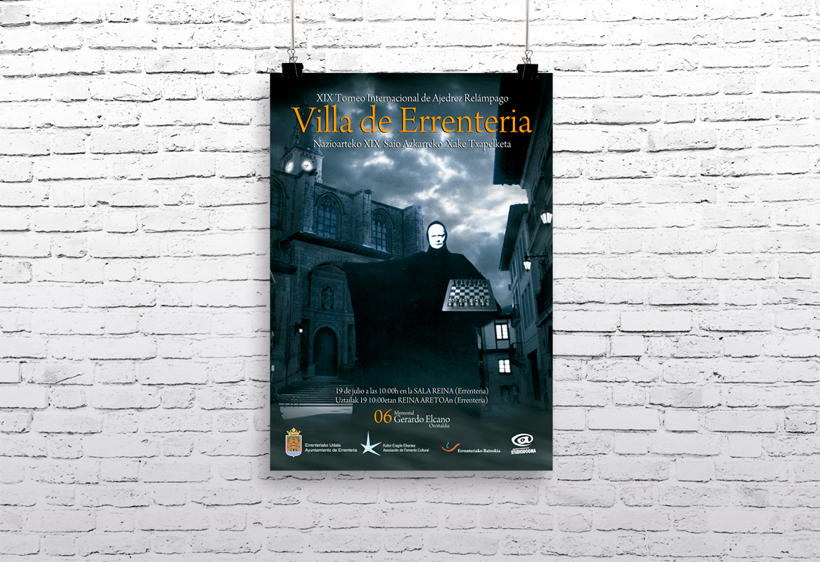 Cada año colaboramos con el campeonato de ajedrez Villa de Errenteria en el diseño de su cartel. Un cartel tamaño A3 a todo color.
