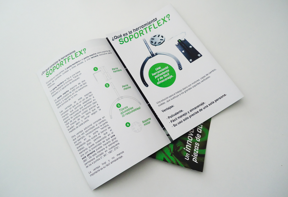 Una nueva herramienta que comienza su andadura y que revolucionará el manejo de componentes a reparar en los talleres mecánicos. Diseño de identidad corporativa, logotipo y tríptico promocional a todo color.